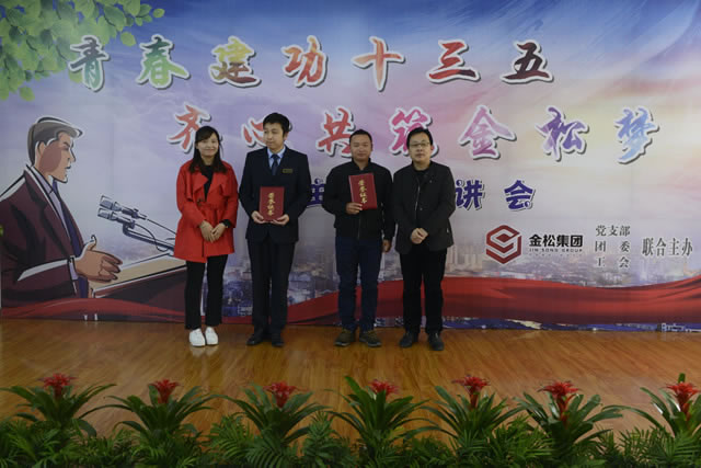 共青團(tuán)松滋市委書記裴敏、金松集團(tuán)總經(jīng)理黃偉等擔(dān)任本次演講比賽評(píng)委并為獲獎(jiǎng)選手頒獎(jiǎng)。