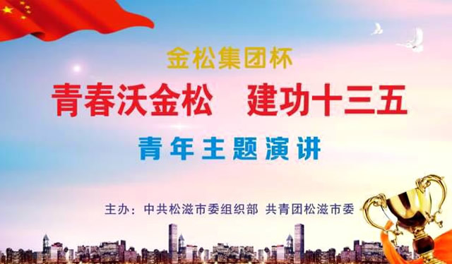 “青春沃金松 建功十三五”青年主題演講賽由金松集團(tuán)冠名。全市各鄉(xiāng)鎮(zhèn)、市直部門踴躍參與,經(jīng)過單位初賽、集中預(yù)賽和預(yù)決賽等3個(gè)環(huán)節(jié)的層層選拔,最終全市有13名選手晉級(jí)決賽。