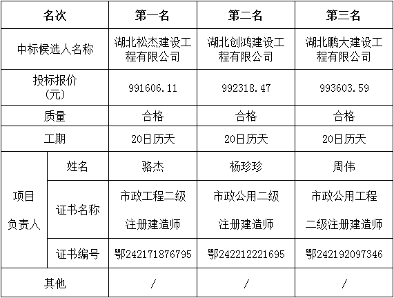 金松集團(tuán)創(chuàng)衛(wèi)環(huán)境整治項(xiàng)目(行政服務(wù)中心地塊場(chǎng)地平整)于2022年11月8日在湖北松滋金松投資控股集團(tuán)有限公司開標(biāo)室開標(biāo),并于2022年11月8日完成評(píng)標(biāo)工作。根據(jù)評(píng)標(biāo)委員會(huì)提交的評(píng)標(biāo)報(bào)告,湖北松滋金松投資控股集團(tuán)有限公司已經(jīng)確認(rèn)評(píng)標(biāo)結(jié)果,現(xiàn)進(jìn)行評(píng)標(biāo)結(jié)果公示。