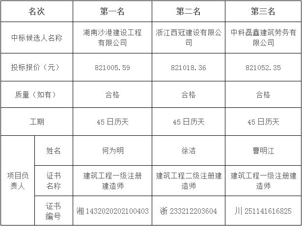 松江花園(二期)8#樓商業(yè)室內(nèi)裝修改造工程于2022年11月30日至12月01日發(fā)布投標(biāo)邀請函,于2022年12月07日15時00分在湖北松滋金松投資控股集團有限公司二樓開標(biāo)室開標(biāo),并于2022年12月07日完成評標(biāo)工作。根據(jù)評標(biāo)委員會提交的評標(biāo)報告,湖北松滋金投置業(yè)有限公司已經(jīng)確認(rèn)評標(biāo)結(jié)果,現(xiàn)進行評標(biāo)結(jié)果公示。