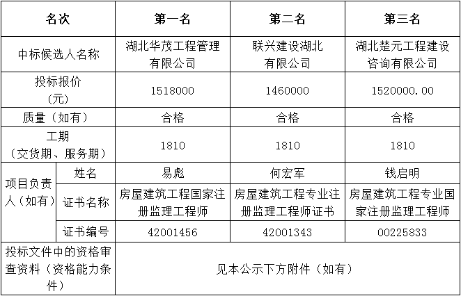 金投?新城臻品建設(shè)項(xiàng)目監(jiān)理金投?新城臻品建設(shè)項(xiàng)目監(jiān)理于2023年02月28日在湖北省電子招投標(biāo)交易平臺(tái)發(fā)布招標(biāo)公告,2023年03月30日在松滋市開標(biāo)室(1)開標(biāo),并于2023年03月30日完成評(píng)標(biāo)工作。根據(jù)評(píng)標(biāo)委員會(huì)提交的評(píng)標(biāo)報(bào)告,湖北松滋金投置業(yè)有限公司已經(jīng)確認(rèn)評(píng)標(biāo)結(jié)果,現(xiàn)進(jìn)行評(píng)標(biāo)結(jié)果公示。