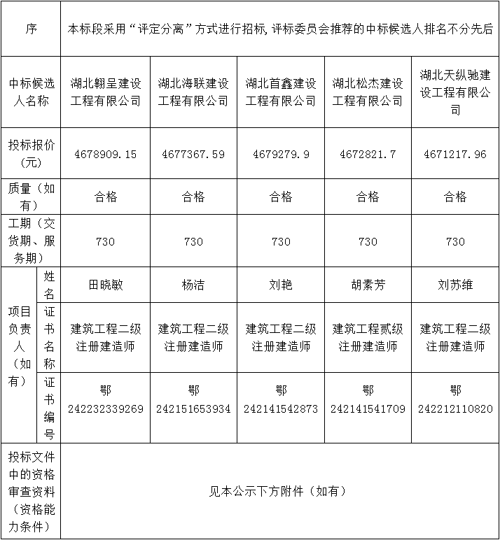 松滋市保障性租賃住房項目(一期)劃子嘴幸福家園及泰和花園三期只租不售房源裝修工程于2024年02月02日在湖北省電子招投標交易平臺發(fā)布招標公告,2024年03月01日在松滋市開標室(2)開標,并于2024年03月01日完成評標工作。根據(jù)評標委員會提交的評標報告,松滋市金投保障房運營房屋租賃有限公司已經(jīng)確認評標結(jié)果,現(xiàn)進行評標結(jié)果公示。