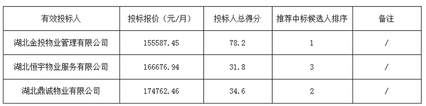 金投•奧體莊園前期物業(yè)服務(wù)項(xiàng)目于2019年08月04日在松滋新聞網(wǎng)(網(wǎng)址:http://www.songzinews.net)(媒介名稱)上發(fā)布招標(biāo)公告,2019年09月10日在松滋市樂(lè)鄉(xiāng)凱瑞大酒店五樓會(huì)議室開(kāi)標(biāo),并于2019年09月10日完成評(píng)標(biāo)工作。根據(jù)評(píng)標(biāo)委員會(huì)提交的評(píng)標(biāo)報(bào)告,湖北松滋金投置業(yè)有限公司已經(jīng)確認(rèn)評(píng)標(biāo)結(jié)果,現(xiàn)進(jìn)行評(píng)標(biāo)結(jié)果公示。