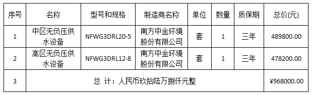 二、項(xiàng)目名稱:湖北松滋金投置業(yè)有限公司金投•奧體莊園項(xiàng)目無(wú)負(fù)壓供水設(shè)備項(xiàng)目(第二次)